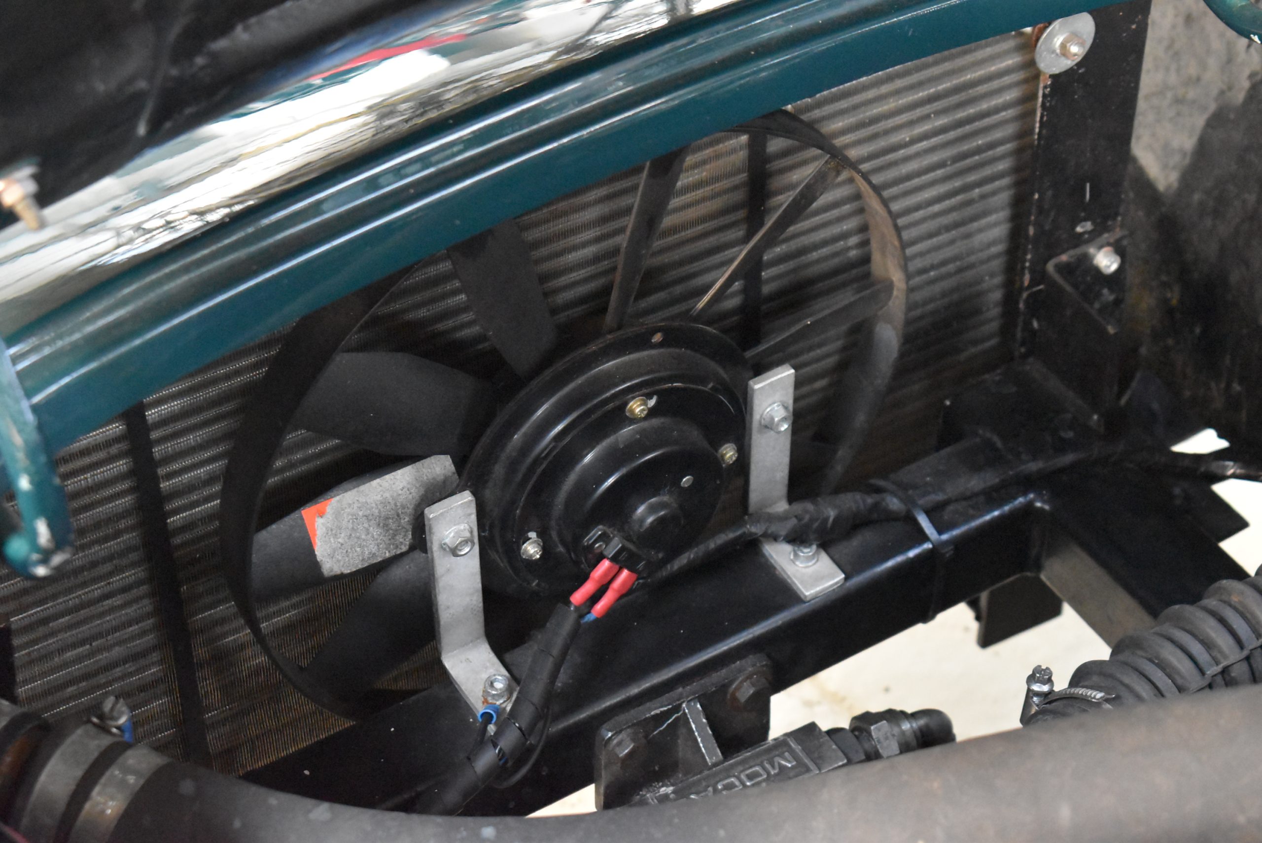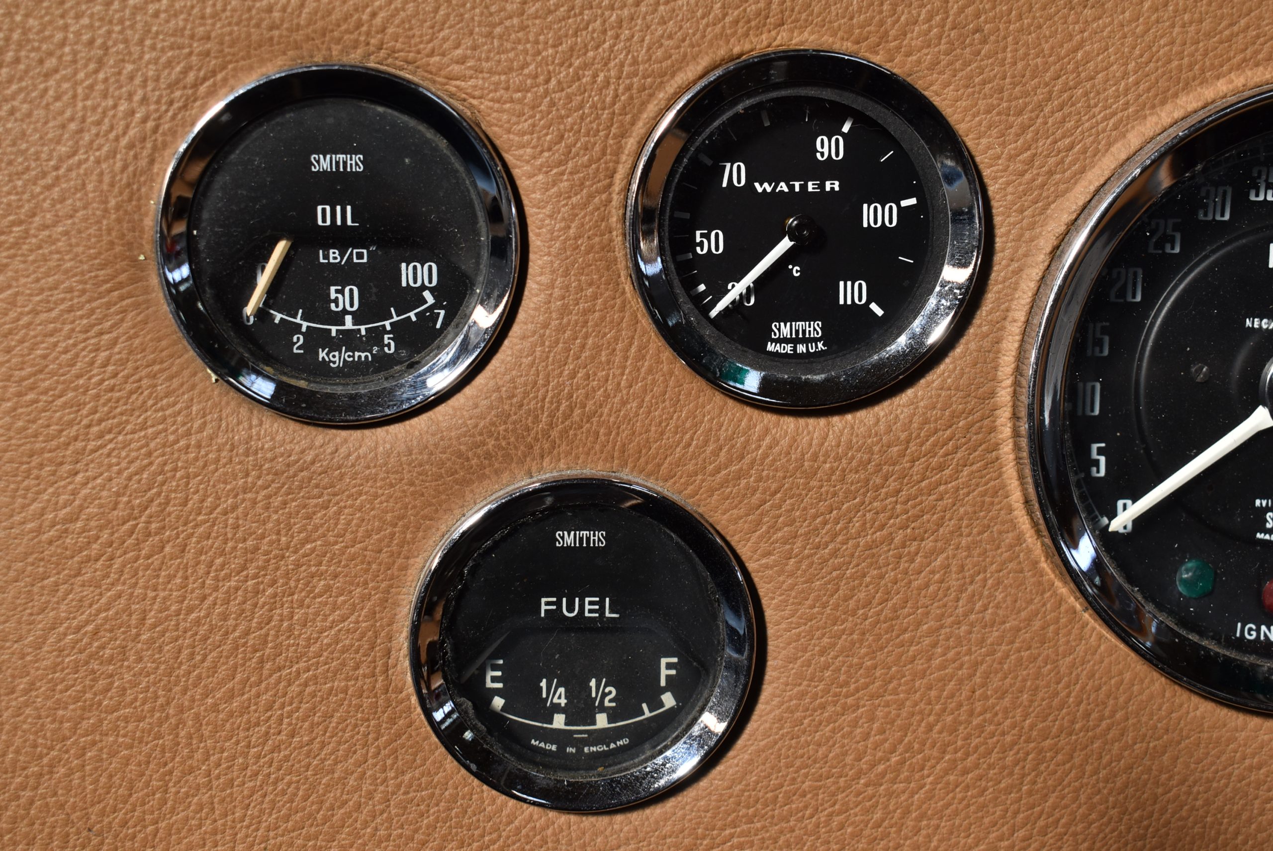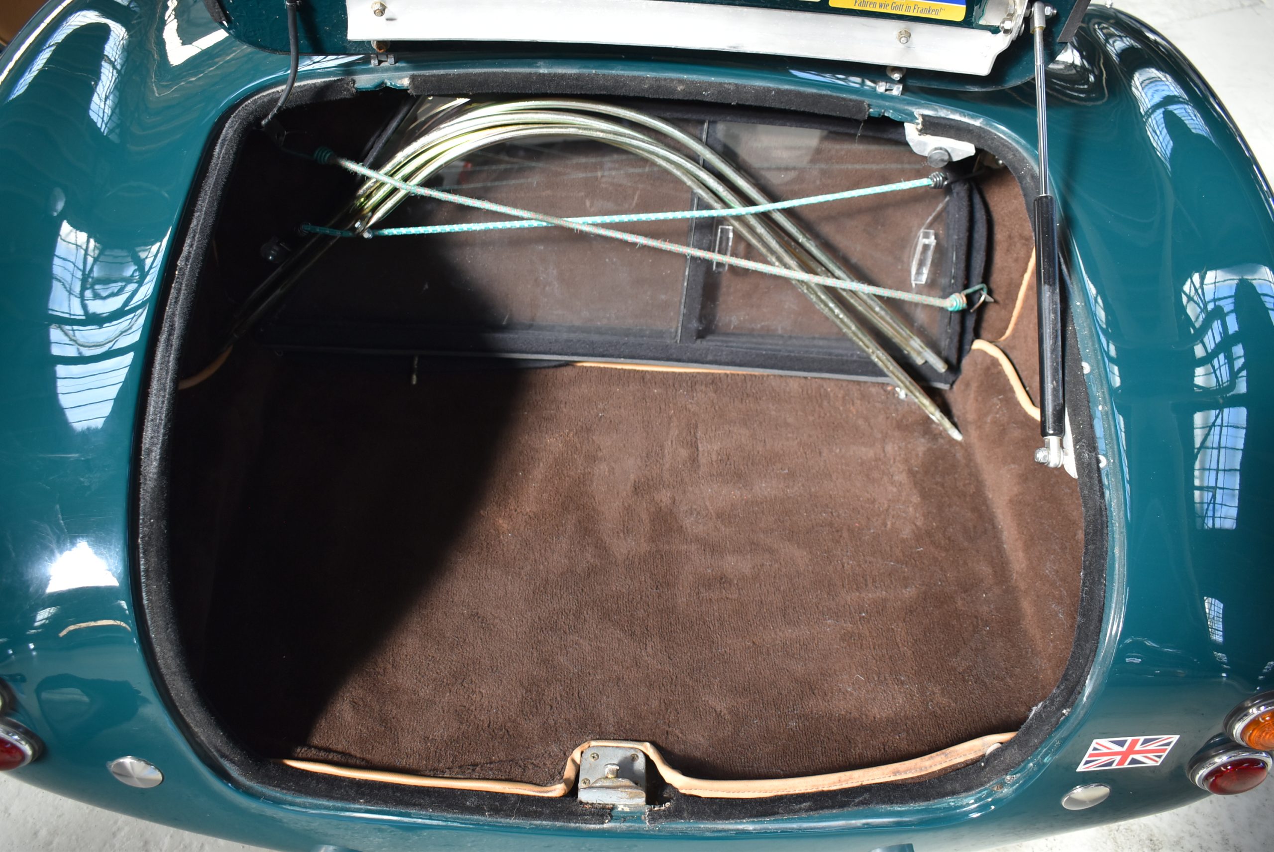 Verbaut ist ein 3,5 ltr. Rover V8 mit knapp 200 PS, einem Holley 4-Barrel Vergaser und Luftfilter sowie einem 5 Gang Schaltgetriebe.