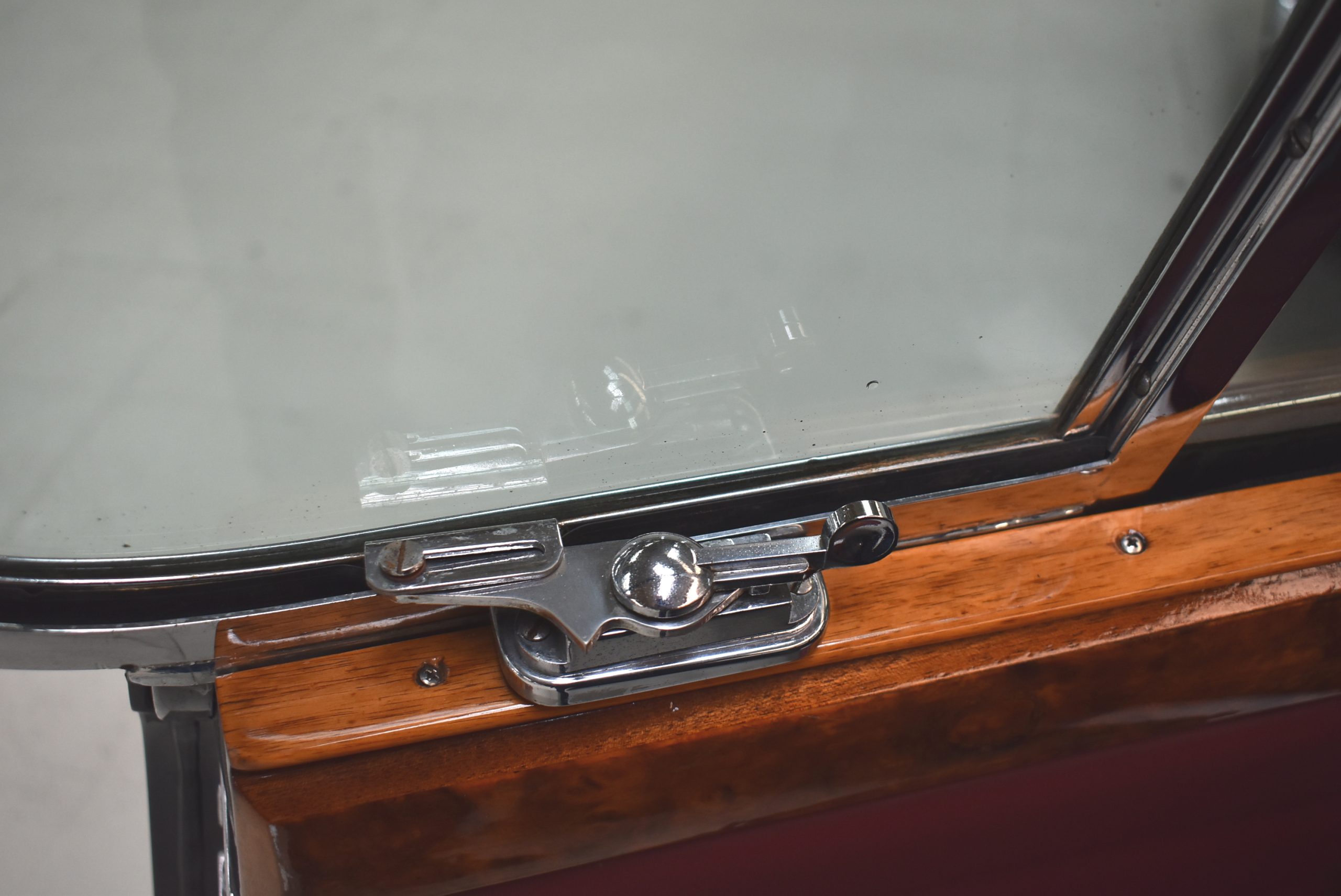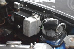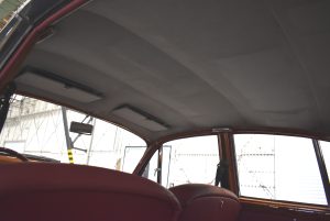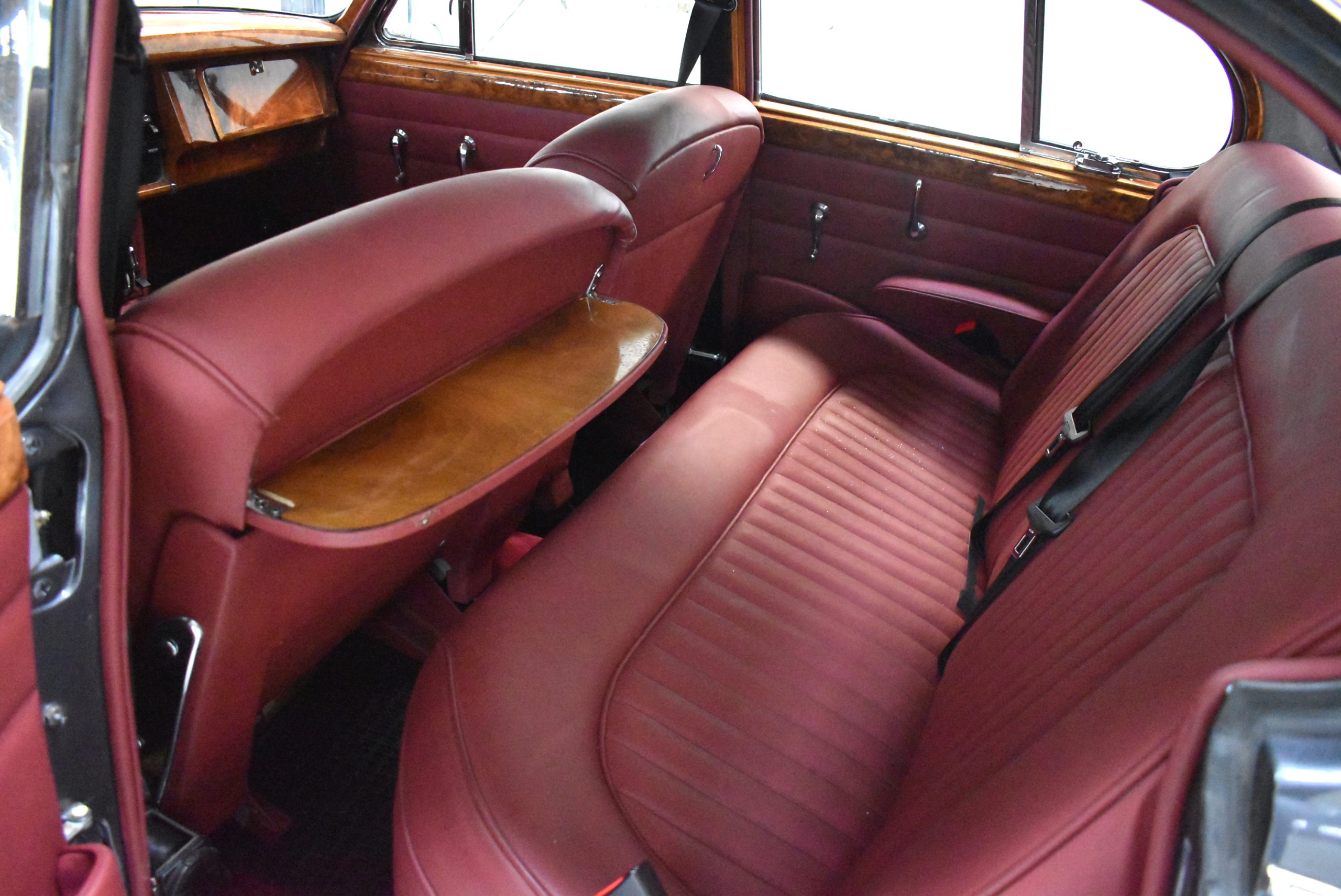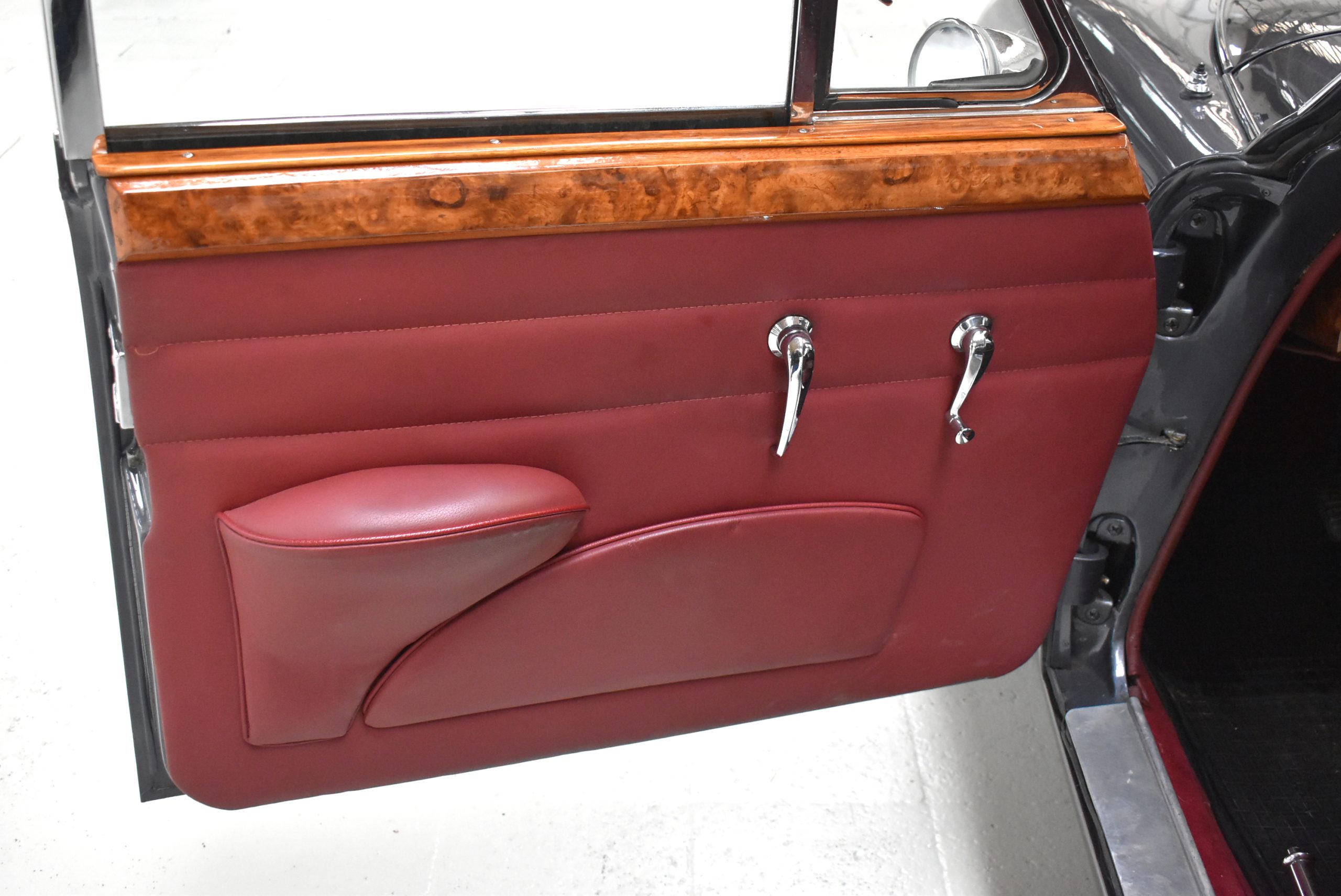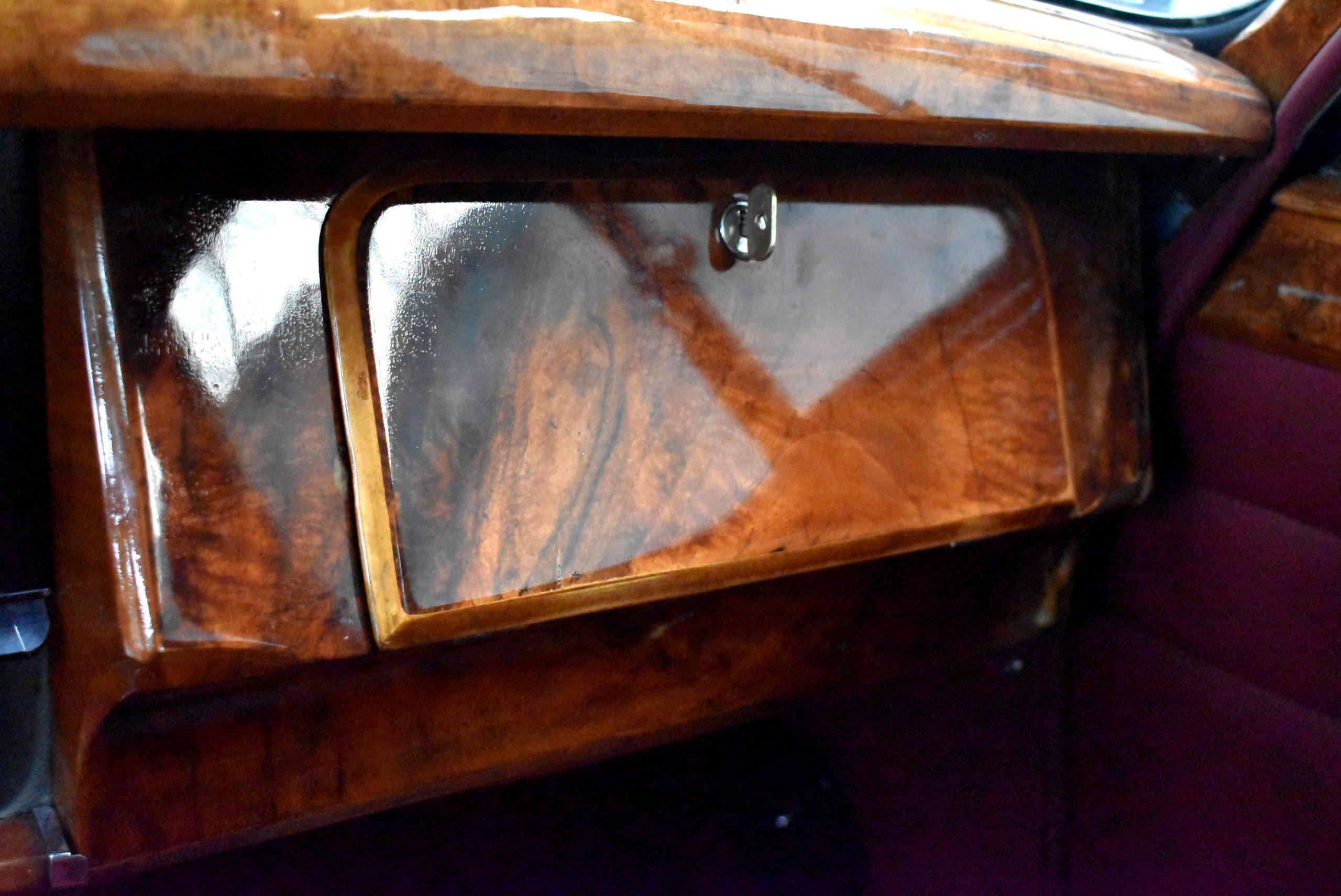 Originaler Linkslenker, Lackierung in Gunmetal Grey mit sehr schönem roten Leder innen, schwarz lackierte Speichenräder mit Zentralverschluß – englischer und sportlicher geht es kaum.